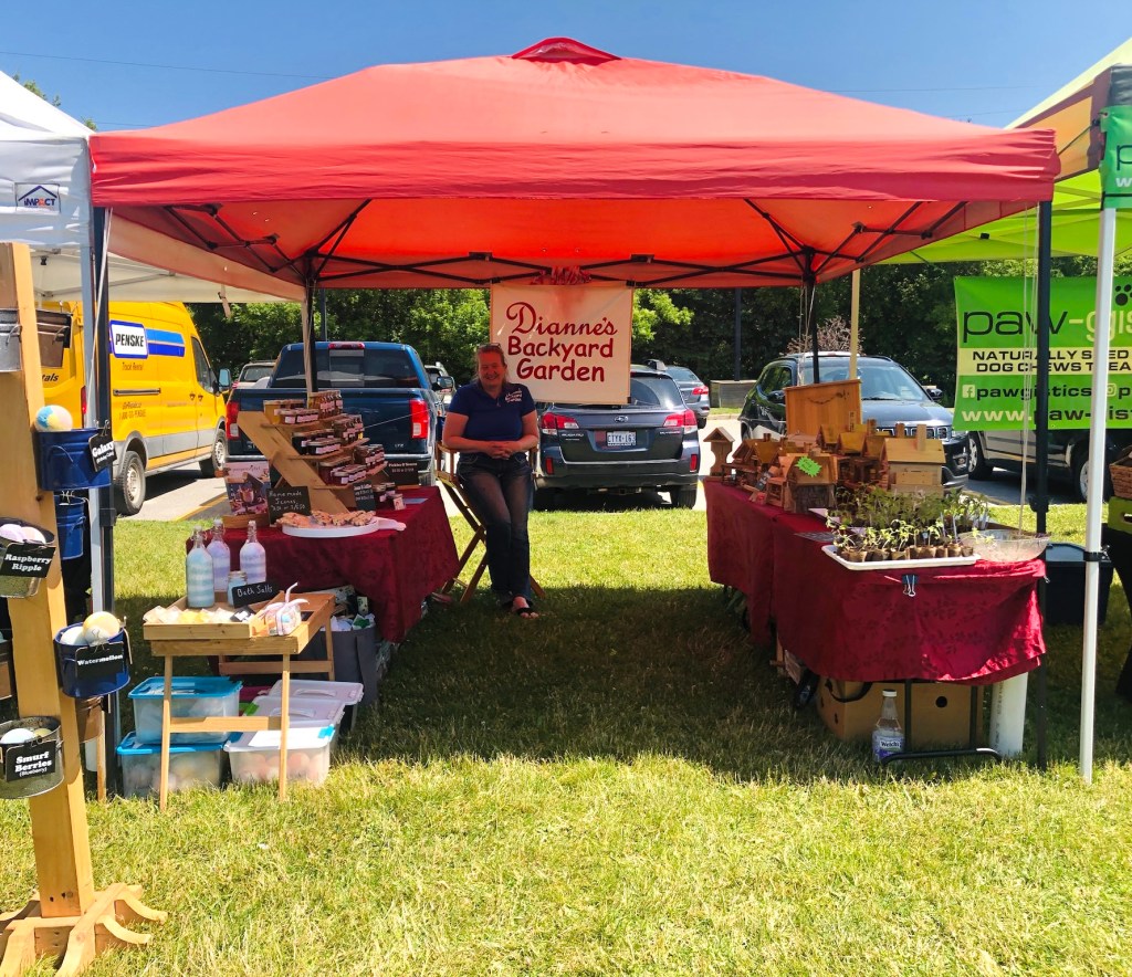 This Dianne’s backyard Garden! She sells homemade scones, bath bombs, bird houses, jams, jellies, pickles, and a diversity of sauces: cucumber relish, salsa, dill, pickles, and more. There’s bird houses that aren’t your ordinary houses either – a garage, a bird bank, post office, fire house, doctors office, distillery, and cidery so you can have a whole town for your birds.